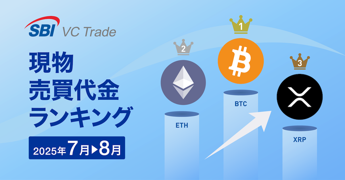 【現物売買代金ランキング(2025年7月)】1位BTC、2位XRP、3位ETH