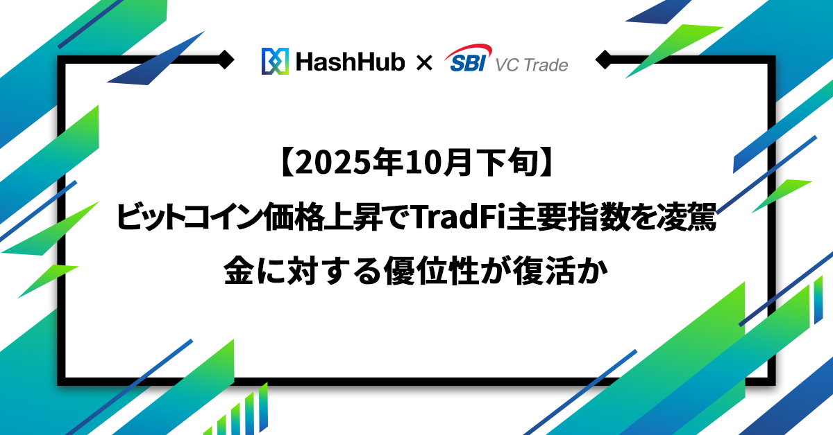 【2025年10月下旬】ビットコイン(BTC)価格上昇でTradFi主要指数を凌駕。金に対する優位性が復活か