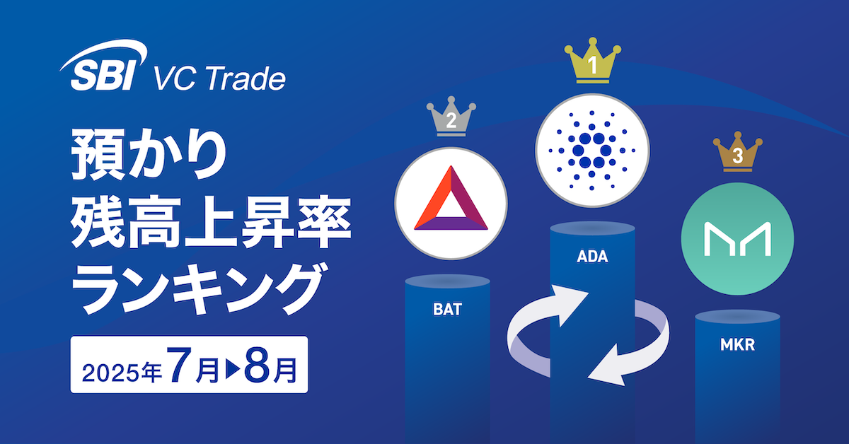 【預かり残高上昇率ランキング(2025年8月)】1位ADA、2位BAT、3位MKR
