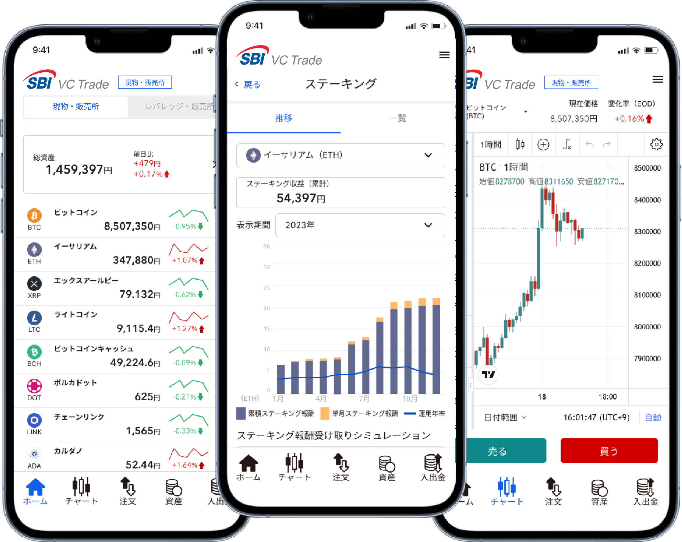 SBI VCトレードでは、ステーキングを開始するのに申し込みや手続きが必要ありません。ステーキングの対象となる暗号資産(仮想通貨)をSBI VCトレードの口座に預けておくだけでステーキング報酬が発生します。