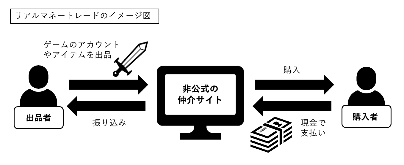 オンラインゲーム内で取得したアイテムやキャラクターを現実のお金で取引することをリアルマネートレード(RMT)といいます。