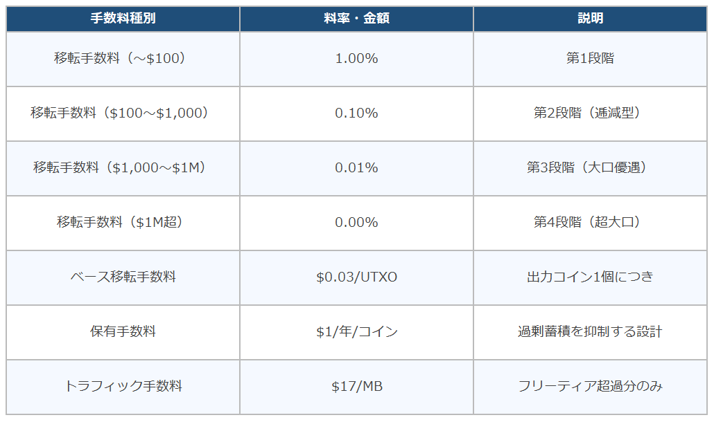 手数料体系は取引金額に応じた逓減型で、大口取引ほど料率が低くなる設計です(下表)。