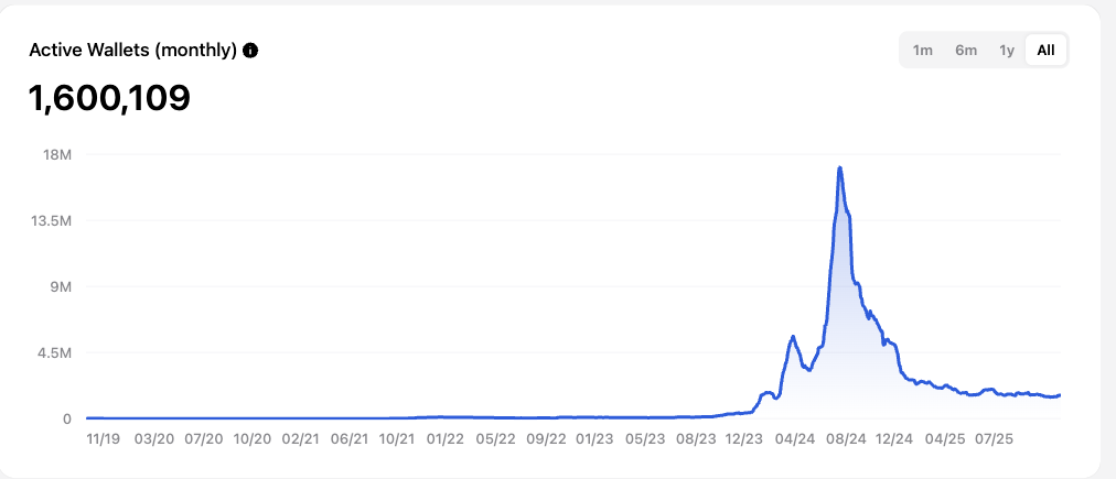 2024年夏の200万超という日次アクティブウォレットは、取引Bot・タップゲーム(Notcoin等)によって押し上げられたものでした。