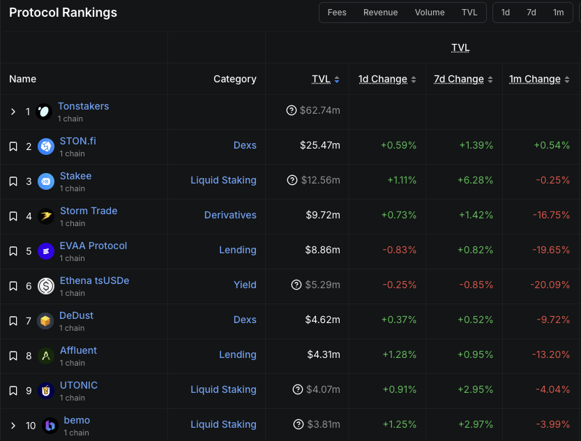 図3:TONのTVLランキング(セクター比較)