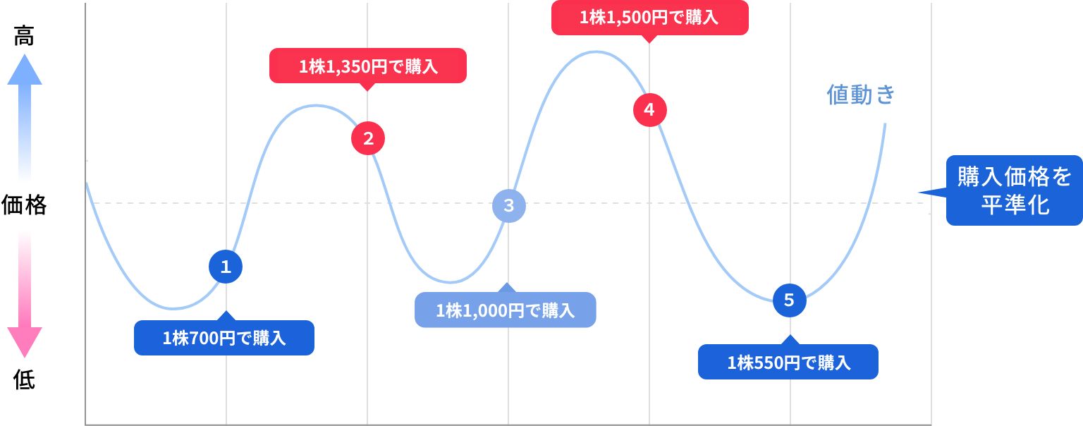 その結果、購入量が自動的に調整され、平均購入単価を平準化することができるという特徴があります。