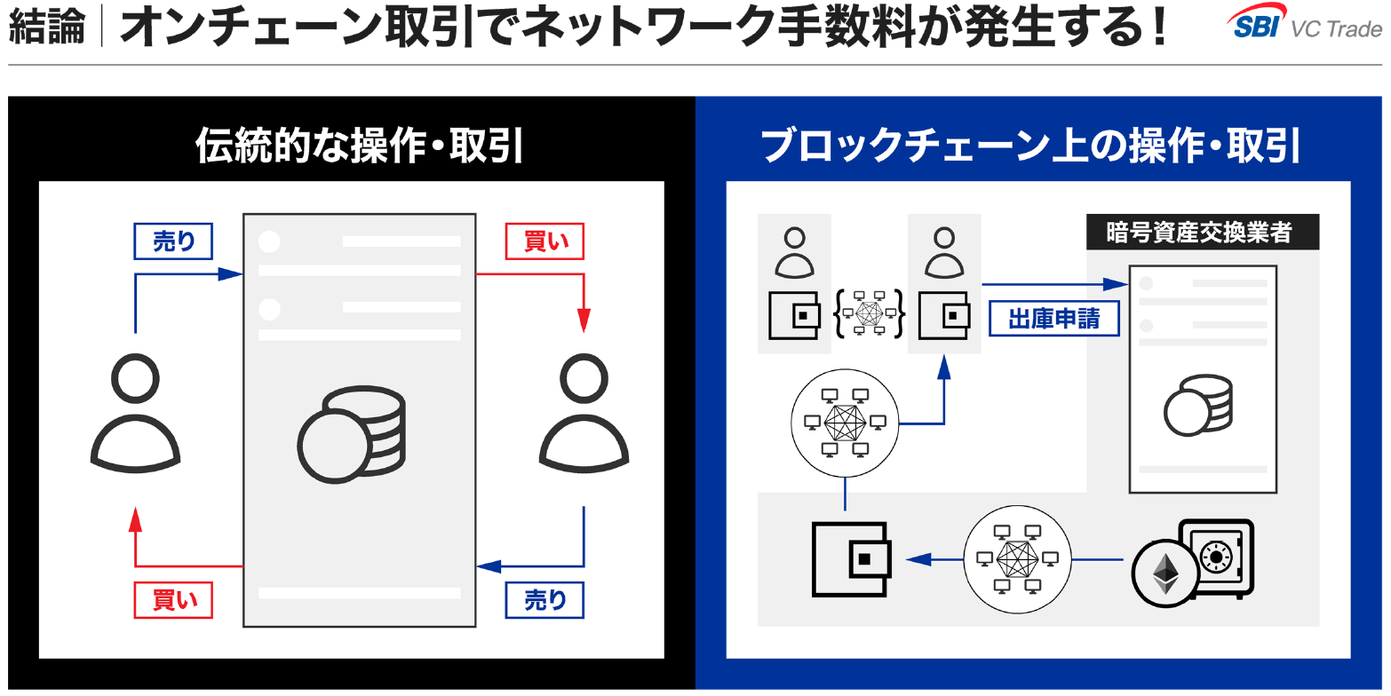 ネットワーク手数料が発生する取引(=オンチェーン取引)