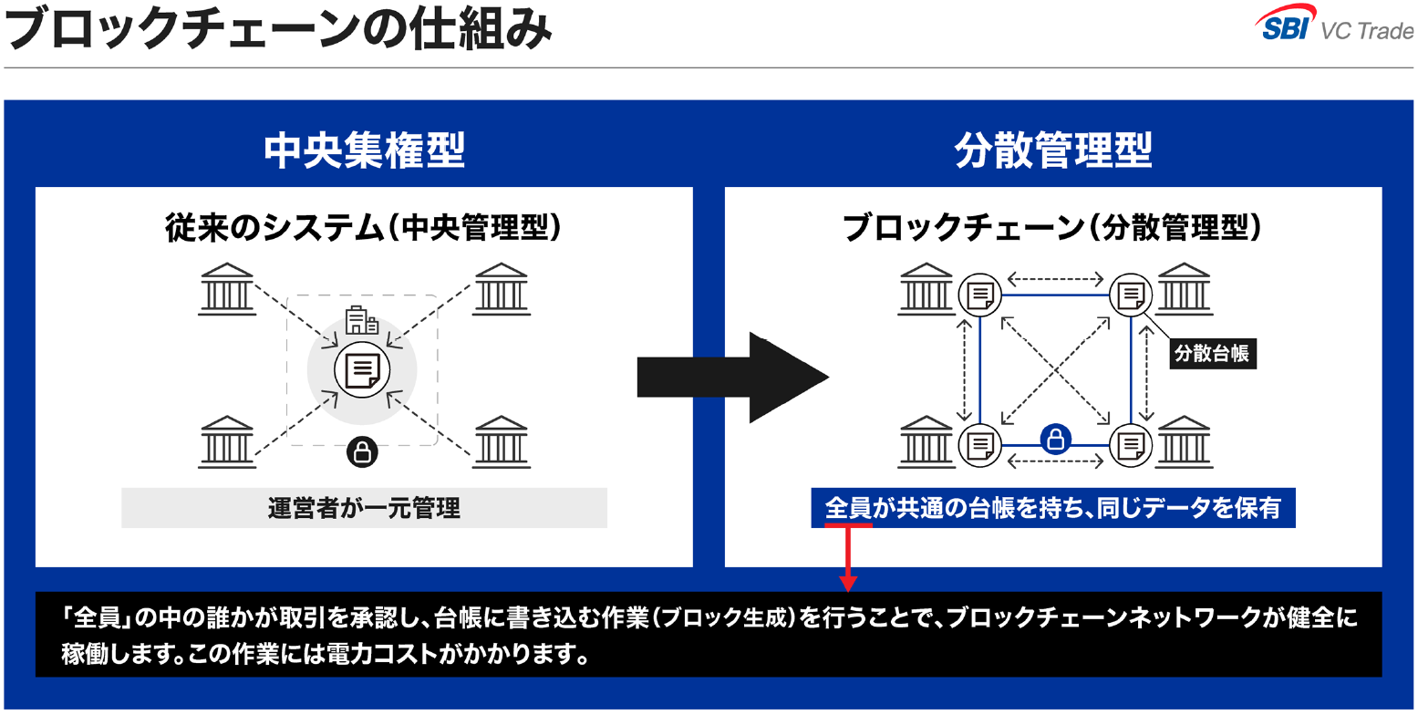 ブロックチェーンは、中央管理者を置かない分散型ネットワークです。