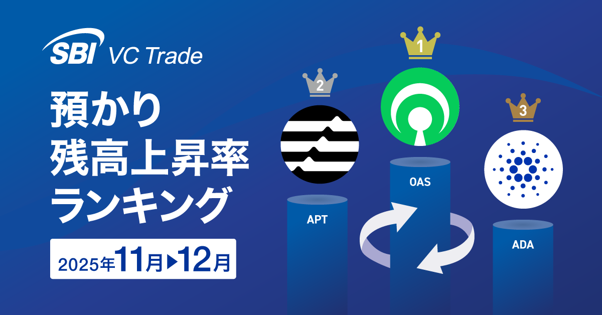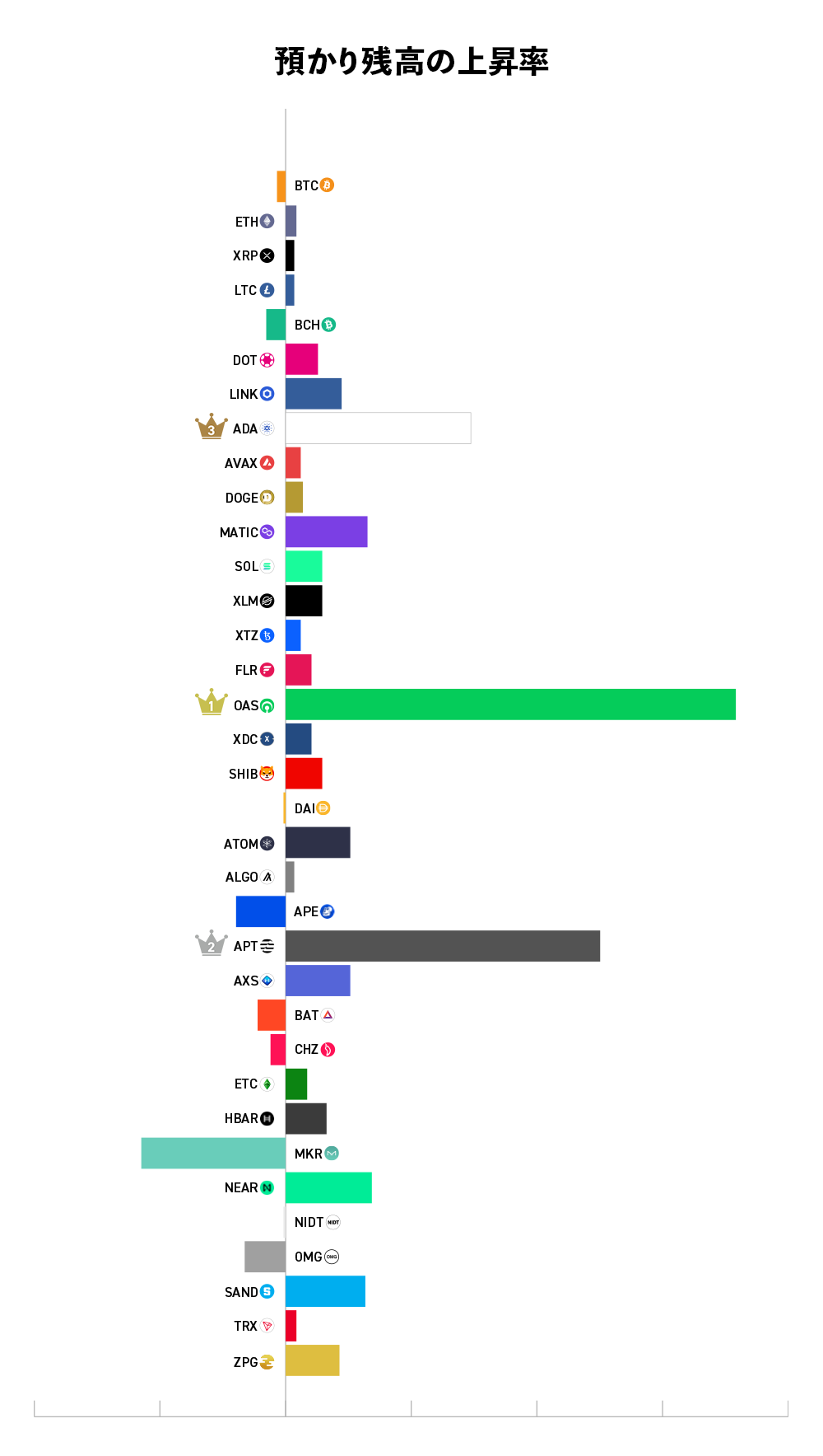 2025年12月の預かり残高の上昇率1位はオアシス(OAS)、2位はアプトス(APT)、3位はカルダノ(ADA)でした。