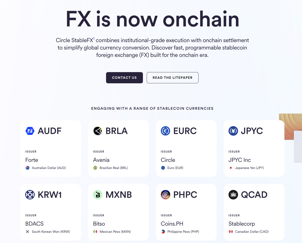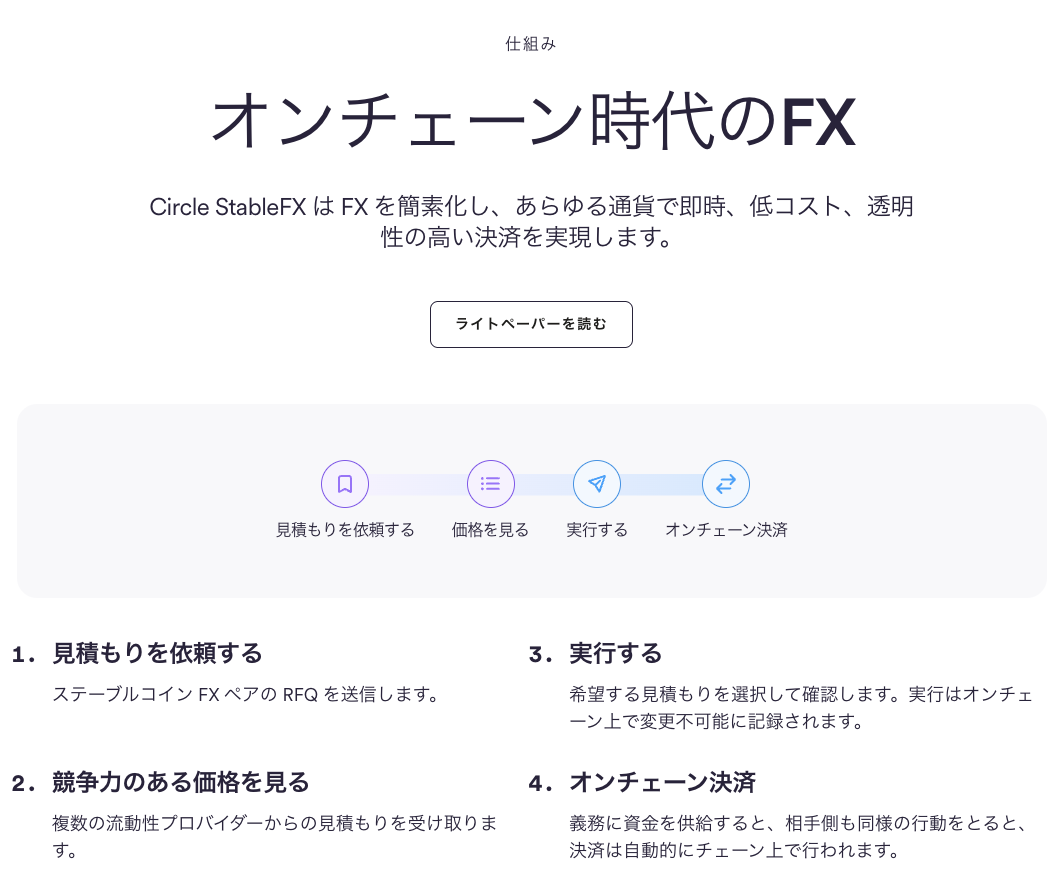2025年11月には、Arcエコシステムの上に機関投資家向けのオンチェーンFXエンジン「Circle StableFX」の発表と、各地域の発行体と連携するマルチ通貨ステーブルコイン・パートナープログラム「Circle Partner Stablecoins」を追加しました。