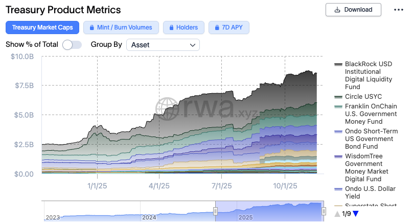 引用:https://app.rwa.xyz/treasuries(2025/11/18時点)