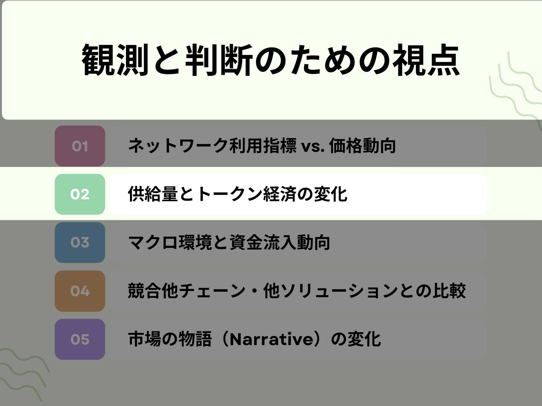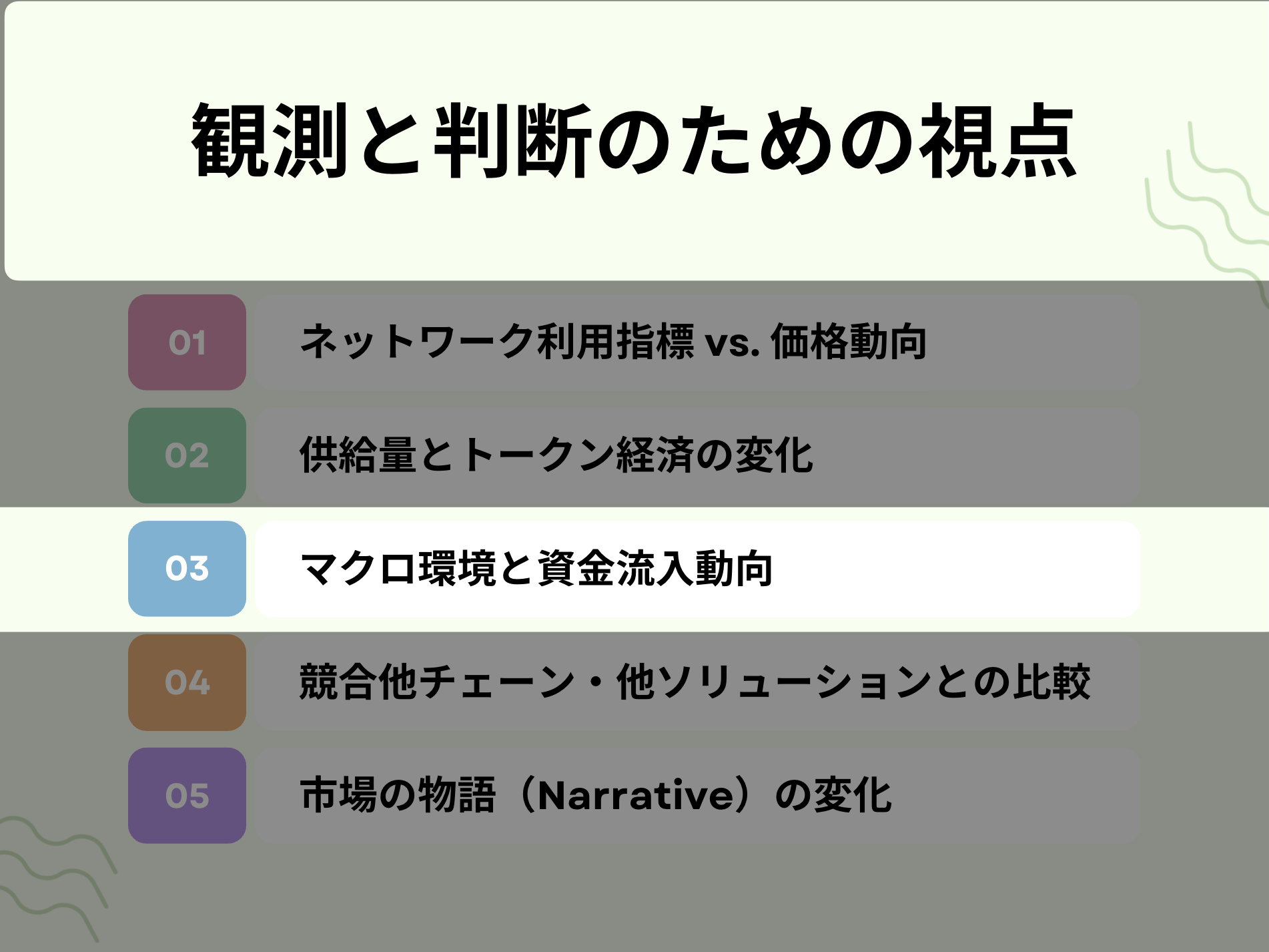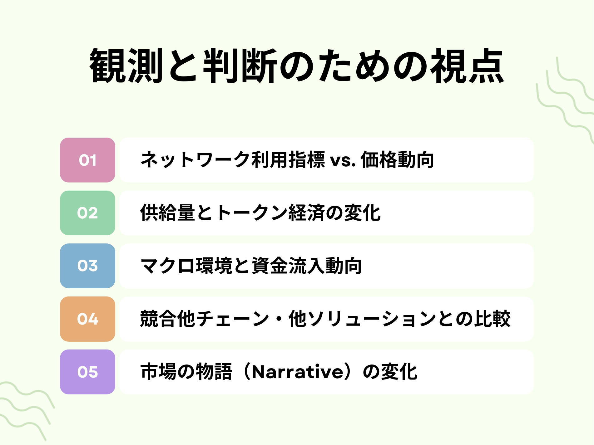 以上を踏まえて最後に本章では、今後の判断材料として注目すべきポイントや視点をまとめます。