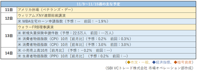 【11/9~11/15週の主な予定】