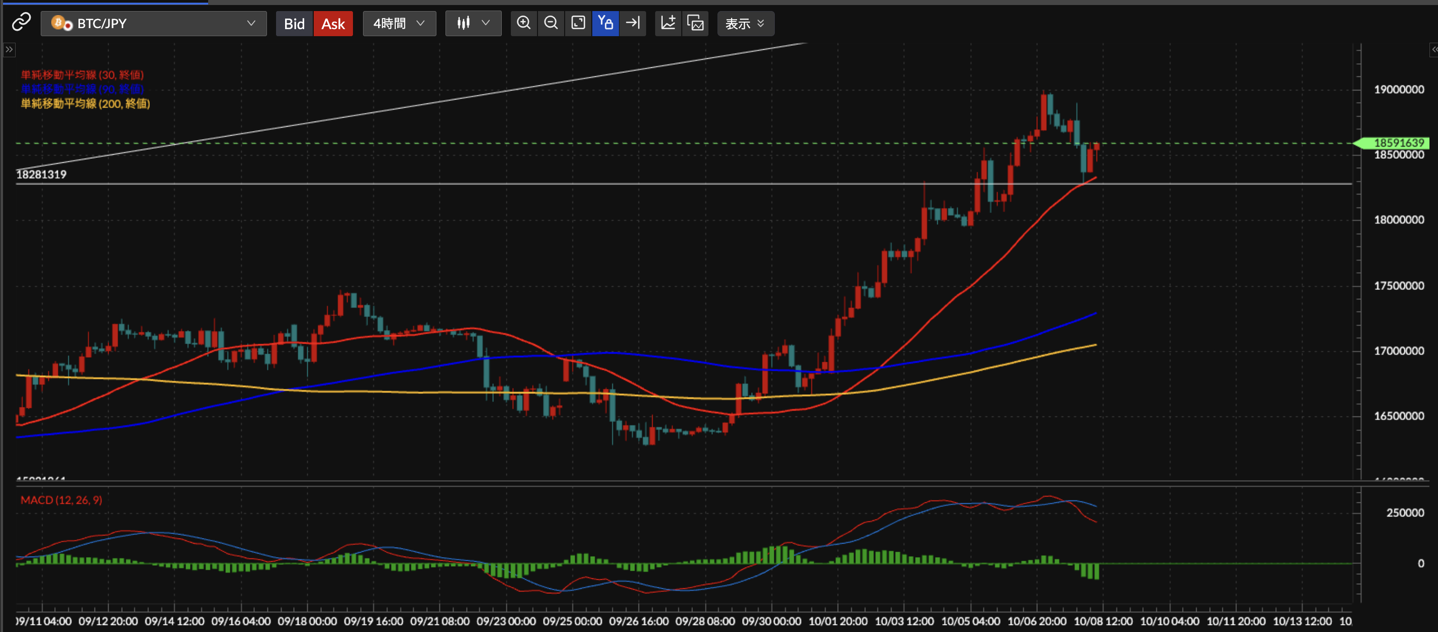 1,828万円付近にサポートラインが引け、8日(水)早朝にはこの水準まで下押ししました。