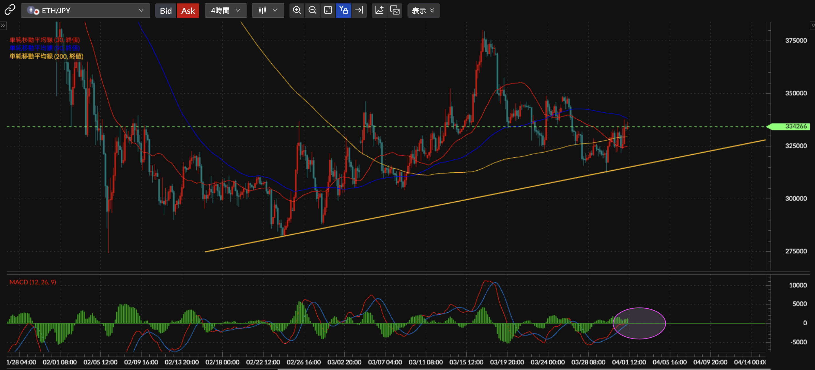 ETH/JPY4時間足チャート分析です。