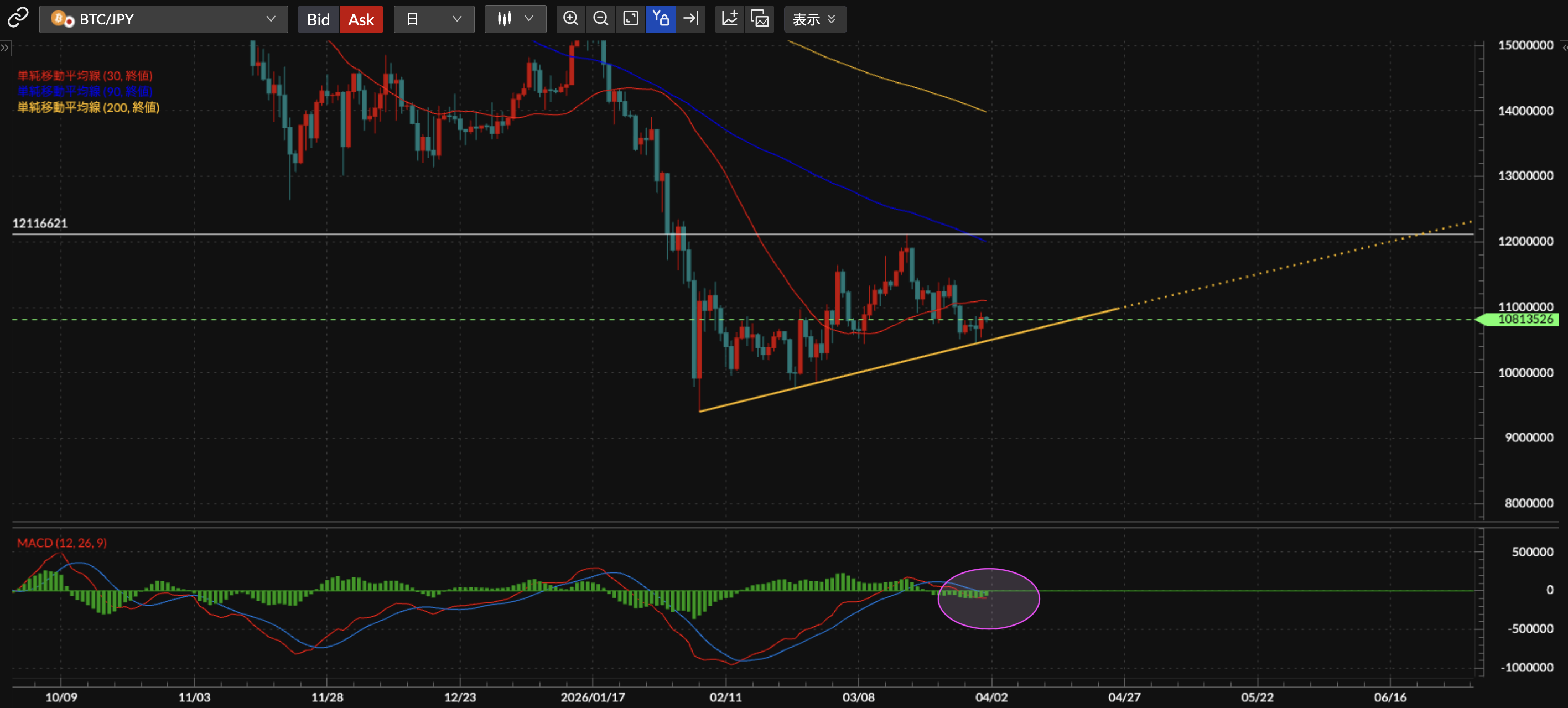 BTC/JPY日足チャート分析です。