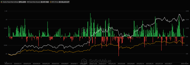 こうした状況を踏まえると、米国時間の火曜日に起きた金価格の急落にビットコインが反応したという見方もできる。暗号資産の保有者で、リスクヘッジ目的で保有していた金が年初来で60%以上上昇しており、利益確定売りによって得た余剰資金が、再びリスク資産である株式やビットコインに流入された可能性がある。この際、週内高値の114,000ドルに一時的に上昇したものの、勢いは続かず木曜早朝には106,000ドルまで押し戻された。しかし、トランプ大統領がバイナンスの創設者チャンポン・ジャオ氏を恩赦したことや米中首脳会談が今月30日にAPECで開催されると正式発表されたことを受け、ビットコインは110,000ドル台を回復した。さらに、金曜日夜に発表された米国9月消費者物価指数(CPI)が市場の予想を下回ったことで、来週の10月FOMCおよび12月のFOMCでの利下げ観測が強まり、110,000ドル台がサポートラインとして意識される展開となった。