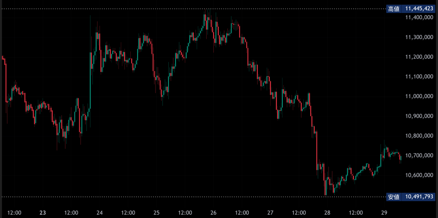 [BTC/JPY週間チャート(30分足)]
