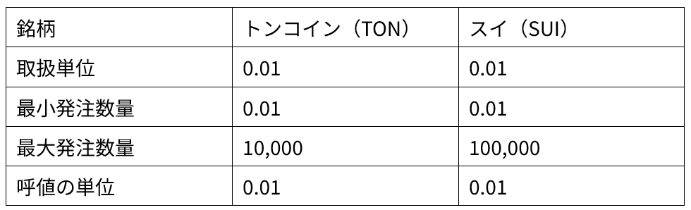 トンコイン(TON)、スイ(SUI)の取扱い開始のお知らせ