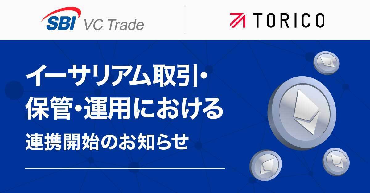 SBIホールディングス株式会社(本社:東京都港区、代表取締役会長兼社長:北尾 吉孝)の連結子会社で暗号資産交換業を営む当社は、東証グロース市場上場でイーサリアムトレジャリー事業を進める株式会社TORICO(本社:東京都千代田区、代表取締役社長:安藤 拓郎、以下「TORICO」)と連携(以下「本連携」)し、大口のお客さま向けに特別サービスを提供する「SBIVC for Prime」を通じて、イーサリアム(ETH)取引・保管・運用における各種サポートを開始することをお知らせいたします。