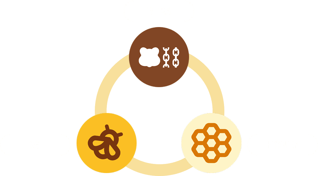 BERA(ガス/ステーク)、BGT(譲渡不可のガバナンス/報酬)、HONEY(ステーブル)で機能分担しています。